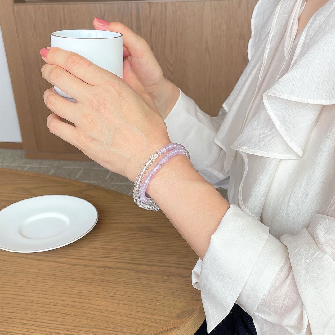 内周16.5cm【京都法珠庵 108玉ブレス】 水晶 ラベンダーアメジスト 数珠 ブレスレット [bh-092]