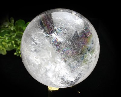 水晶の曇りは、やや入っているものの、レインボーが広範囲に入っており、