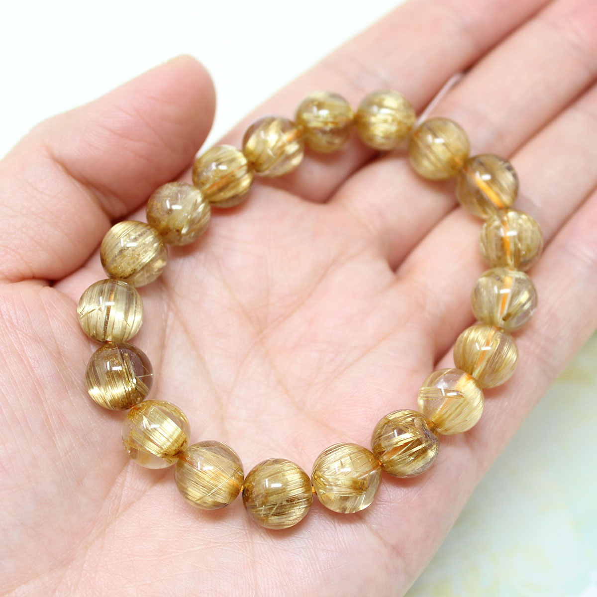 極上 10-10.5ミリ タイタン ルチルクォーツ (金線入水晶) ブレスレット