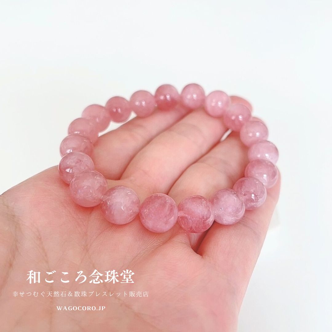 コロンと飴玉のように艶がありかわいいディープローズクォーツのブレスレットです。