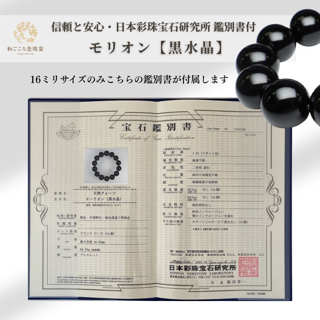 超稀少!【新登場】16ミリ 超極上 モリオン (黒水晶) ブレスレット ◆宝石鑑別書付き◆ベロア巾着付◆内径約18cm14.5cm16cmへサイズ変更可能 [bu-105]