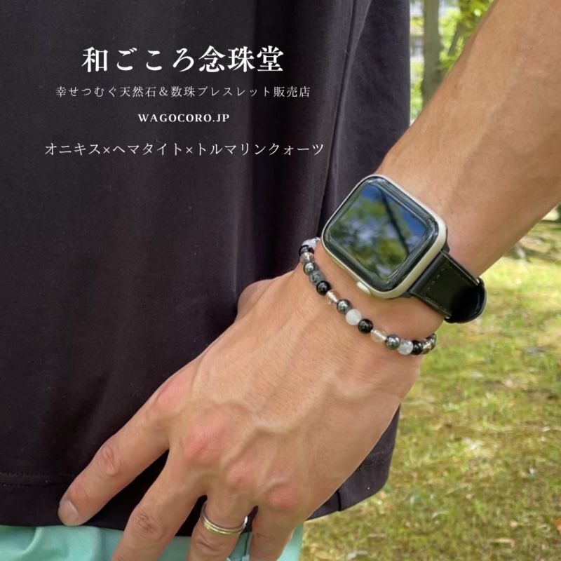 6ミリ★願望達成★オニキス×ヘマタイト×トルマリンクォーツ数珠ブレスパワーストーン メンズ レディース 男性用 女性用 父の日 プレゼント ギフト [b10-6-009]