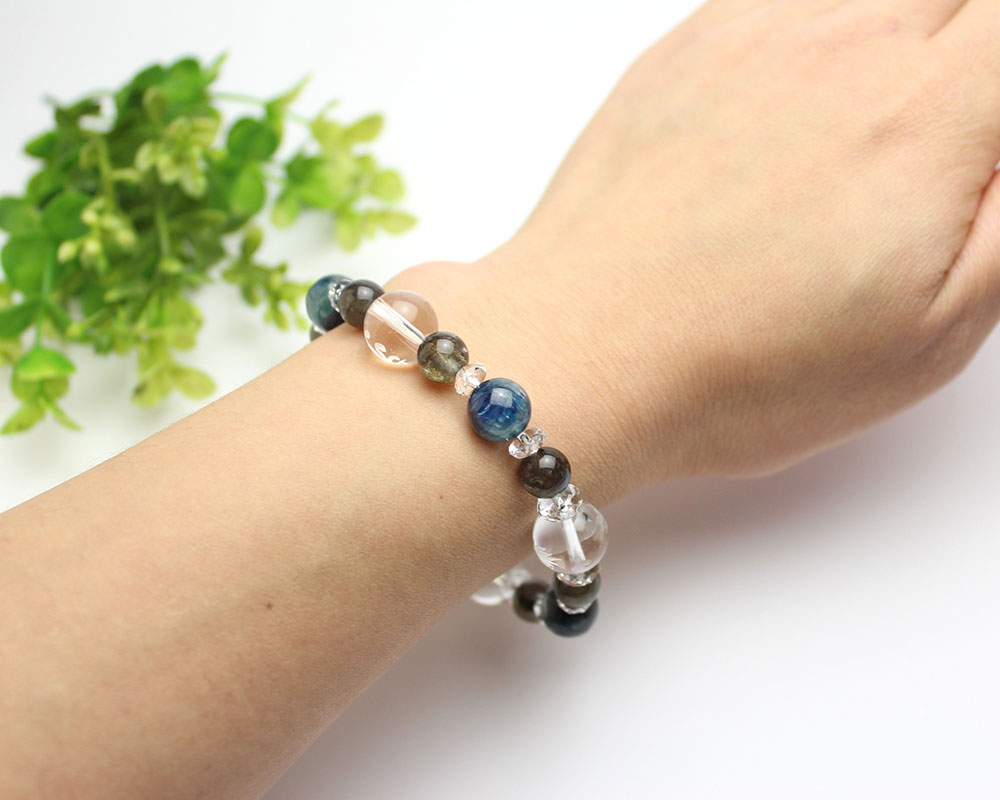 写真現品お届け【開運四神ブレス】力強く前進 10ミリカイヤナイト × ラブラドライト パワーストーン ブレスレット