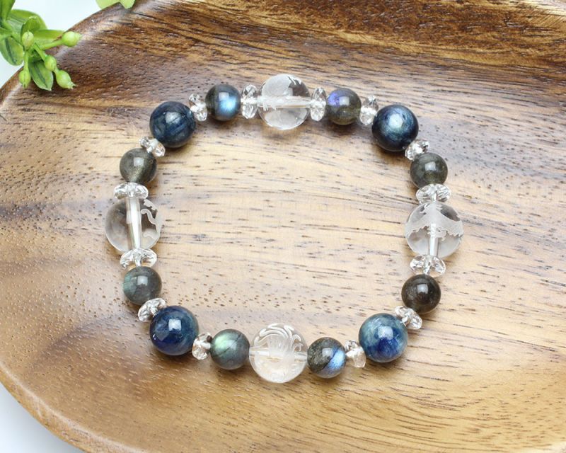 四神彫り水晶(12ミリ)/ラブラドライト(8ミリ)/カイヤナイト(10ミリ)