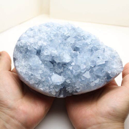 セレスタイトは、硬度が3.5と柔らかい上に「劈開(へきかい)」が非常に強い石です。そのため、ジュエリー等の加工が非常に難しく、インテリアストーンやベッドサイドストーンとして人気があります。