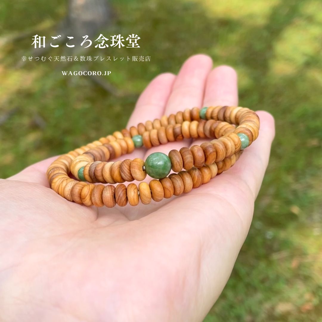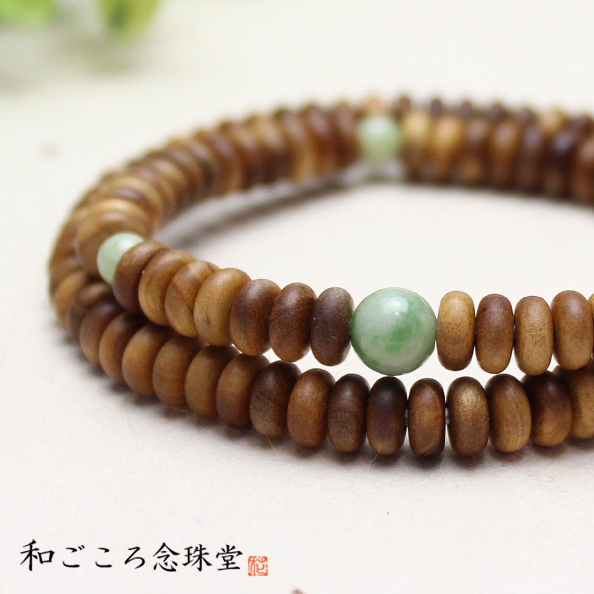 本式数珠と同じ『108玉』でつくたれた功徳の高いブレスレットです。本格的な腕輪念珠をいつも身に着けることが出来るので人気があります。