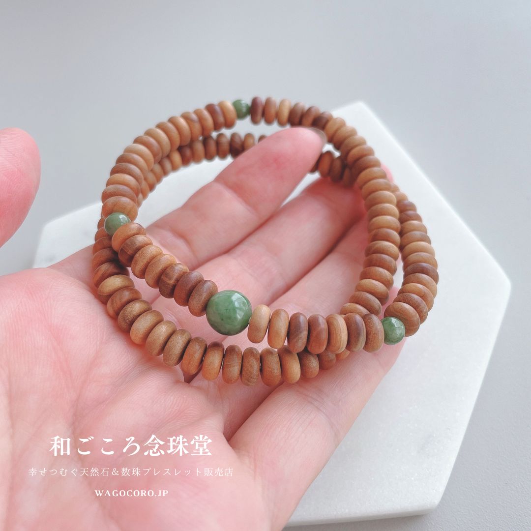 内周16.5cm・17cm【108玉ブレス】白檀 独山玉 (びゃくだん どくさんぎょく)数珠ブレスレット