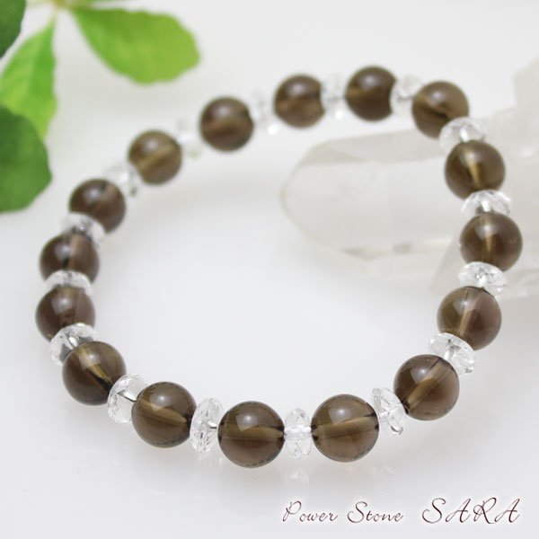 安定・癒し♪8ミリ スモーキークォーツ(茶水晶)×ボタンカット水晶 パワーストーン ブレスレット